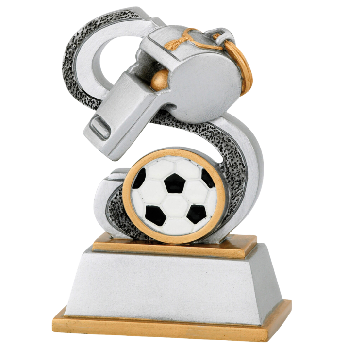 Dieser mattsilberne schiedsrichter-Pokal aus Harz ist mit goldenen Akzenten versehen und bei Budgetpokale direkt ab Lager lieferbar. Der Pokal zeigt eine Pfeife und einen Fußball. Am Sockel des Pokals können Sie ein Textschild mit Ihrem eigenen Text anbringen lassen. Budgetpokale führt die Montage des Textschilds gratis aus!