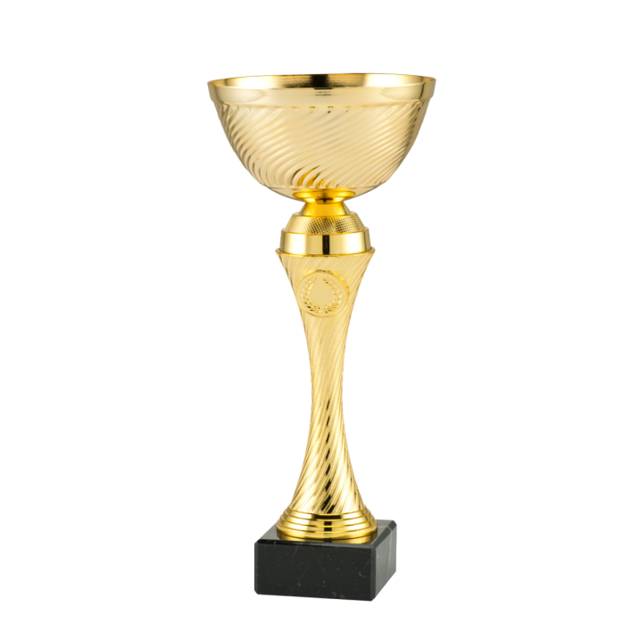 Dieser Goldpokal ist bei Budgetpokale in 6 verschiedenen Größen bestellbar. Das Mittelstück kann mit einem Gravurschild versehen werden. Dafür Sie können eine Abbildung aus unserem Katalog wählen. Sie können jedoch auch eine eigene Abbildung hochladen. Der Marmorsockel kann mit einem Textschildchen versehen werden. Auf diese Weise gestalten Sie den Pokal individuell nach Ihren Wünschen.