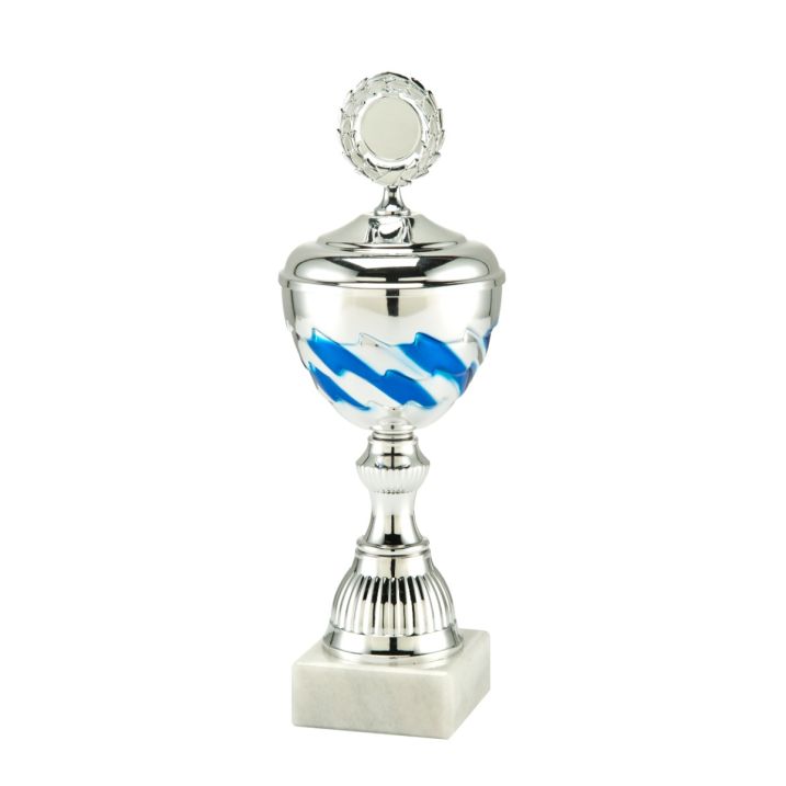 Dieser schöne Pokal mit Deckel ist bei Budgettrophy in 6 Größen erhältlich. Der Becher des Pokals ist mit blauen Akzenten versehen. Auf dem Deckel kann zusätzlich eine Abbildung angebracht werden. Wählen Sie eine Abbildung aus unserem Katalog oder laden Sie ein eigenes Design hoch. Der Marmorsockel kann mit einem Textschild mit einem eigenen Text versehen werden. ✓ Geeignet für alle Sportarten ✓ Topqualität ✓ Individueller Text möglich