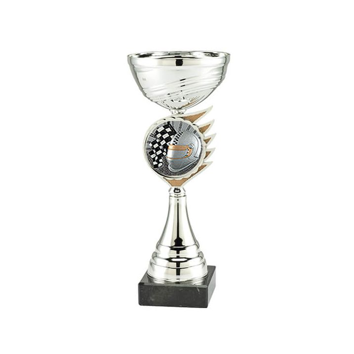 Pokal mit Emblem und Autosportmotiv - in Silber ab 26 cm
