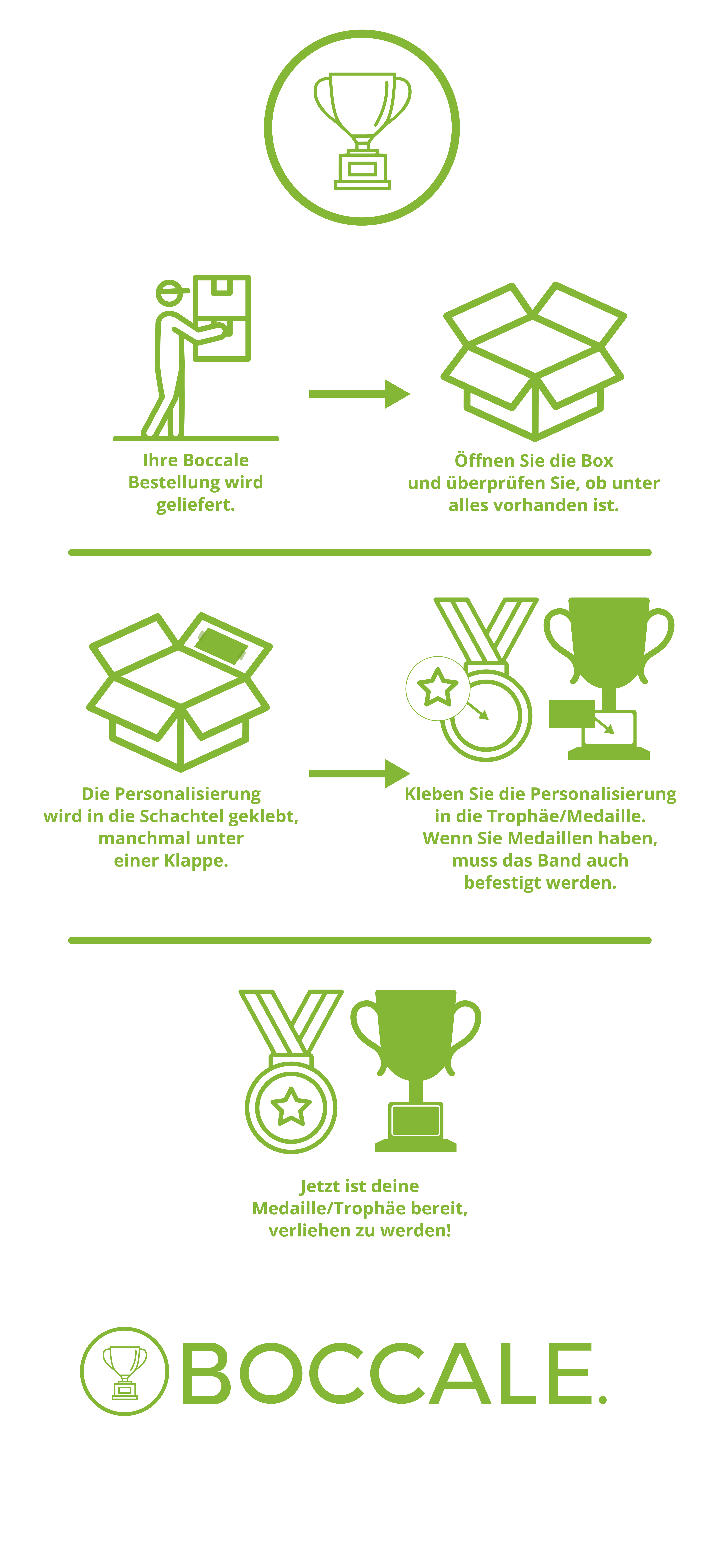 Für eine schnellere Lieferung wählen Sie an der Kasse: „Ich möchte selbst Aufkleber oder Bänder anbringen.“ Sie erhalten dann alle Teile separat zur individuellen Fertigstellung.