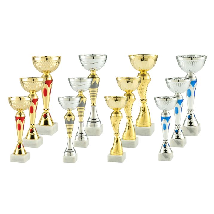 Sie möchten allen Teilnehmern einen Pokal vergeben? Aber Sie haben keine Lust, einzelne Pokale zu suchen? Dann ist das Pokal - Vorteilspaket Devon vielleicht genau das Richtige für Sie! Das Vorteilspaket besteht aus nicht weniger als 12 Pokalen, die alle personalisierbar sind. Das Vorteilspaket besteht aus 4 Pokalserien mit verschiedenen Modellen, Farben und Größen. Ideal, wenn Sie einen Wettbewerb für Teilnehmer mit verschiedenen Kategorien und Disziplinen organisieren. Platzieren einen persönlichen Text auf dem Sockel des Pokals, um ihn zu vervollständigen. Möchten Sie für jeden Pokal einen anderen Text? Das ist kein Problem! Bei der Texteingabe Sie können für jeden Pokal angeben, mit welchem Text der Pokal versehen werden soll. Sie schreiben beispielsweise „Text kleinster Pokal“ und darunter geben Sie den Text an. Um Ihnen die Textauswahl zu vereinfachen, können wir Ihnen eine Exceldatei zusenden, in die Sie Ihre Personalisierungswünsche eingeben. ✓ 12 Luxus - Trophäen zu einem sehr günstigen Preis! ✓ Topqualität ✓ Individueller Text möglich