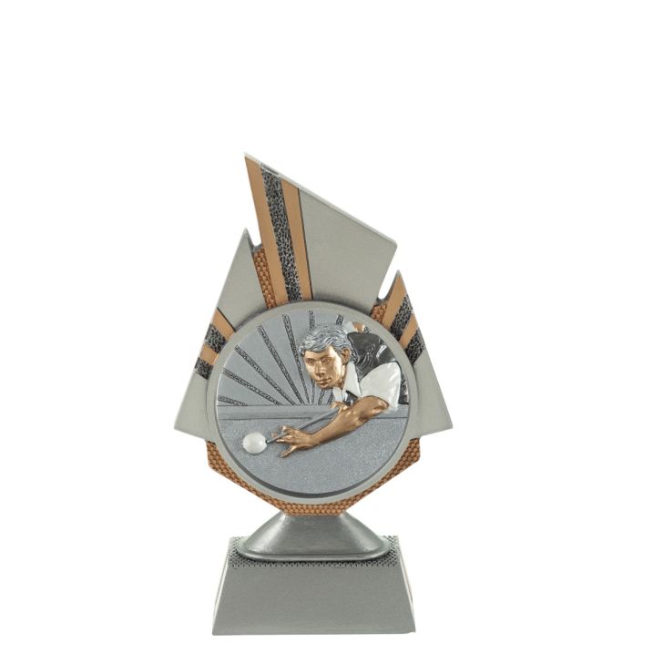 Diesen Pokal gibt es bei Budgetpokale in 3 verschiedenen Größen vorrätig. Es ist ein schöner Harz-Halter, an dem eine billard-Disc befestigt ist. Unten am Pokal ist Platz für ein Textschild, das Sie mit einem eigenen Text versehen lassen können. Das Textschild wird von Budgetpokale gratis montiert.