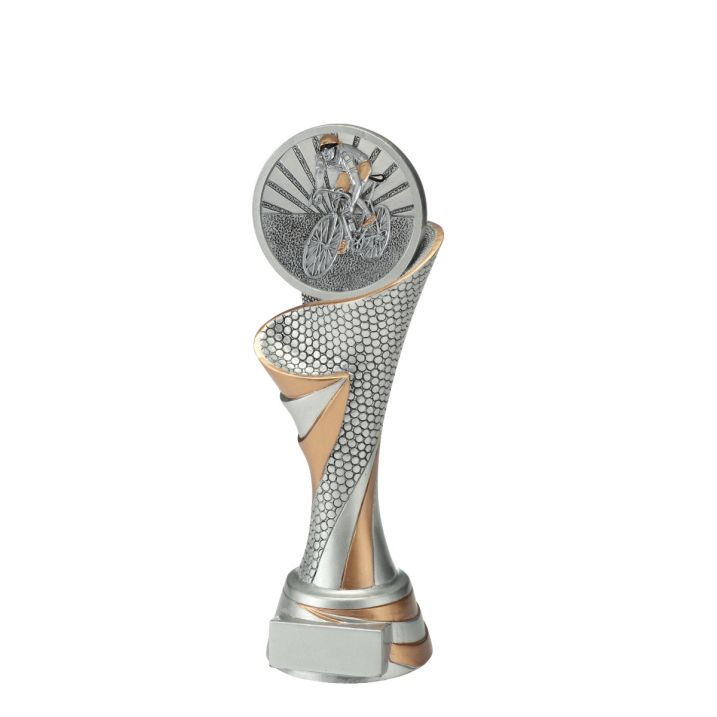 Dieser schöne, stehende Pokal ist in 3 verschiedenen Größen verfügbar. Es ist ein silberner Pokal mit goldenen Akzenten und an der Oberseite ist eine schöne mountainbike-Disc zu sehen. Unten am Pokal ist genug Platz für ein Textschild mit Ihrem eigenen Text. Das Textschild wird von Budgetpokale gratis montiert!
