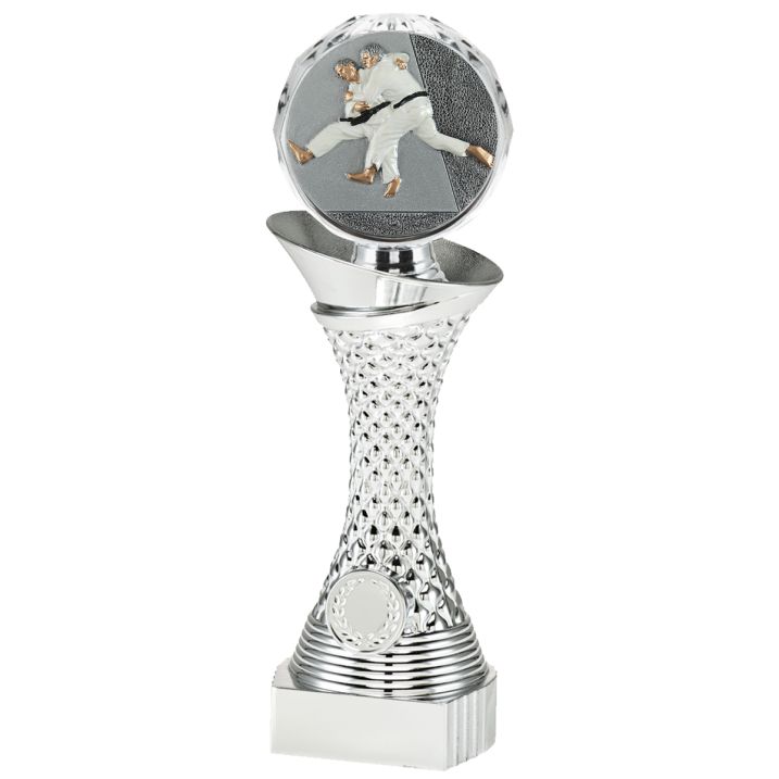 Dieser Silberpokal ist bei Budgetpokale in 3 verschiedenen Größen verfügbar. Die Oberseite des Pokals ist mit einer schönen judo-Disc versehen und unten ist Platz für eine eigene Abbildung und ein Textschild! Sie können ein eigenes Design für die Abbildung hochladen. Oder eine unserer Abbildungen auswählen. Die Montage des Pokals wird von Budgetpokale gratis ausgeführt.
