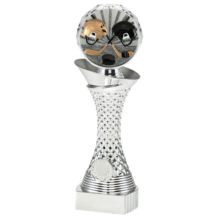 Die Nova Eishockey Trophäe ist eine silberfarbene Auszeichnung, die bei Boccale in drei verschiedenen Größen erhältlich ist. Durch die Eishockey-Disc im oberen Bereich eignet sich dieser Pokal ideal für Eishockeyturniere, Vereinsmeisterschaften oder andere sportliche Ehrungen.